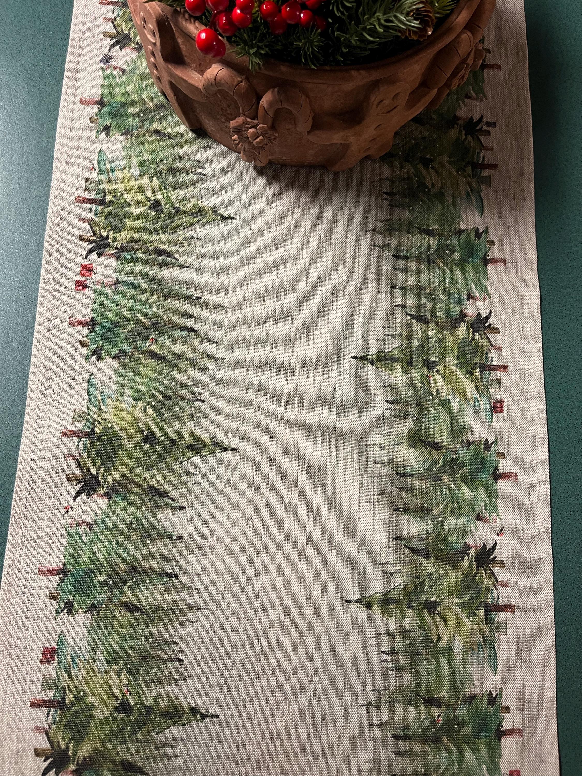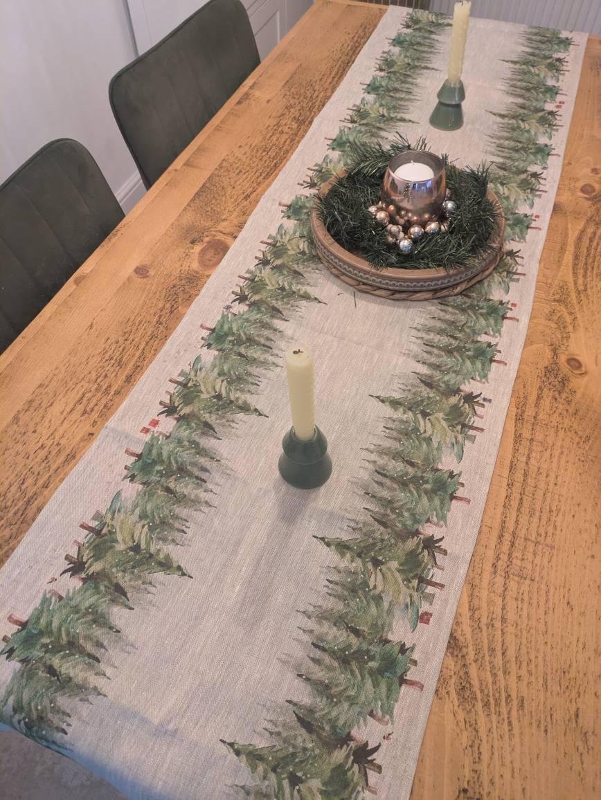 Linen table runner "Paws in the Snow". Beige color edition. NEW!