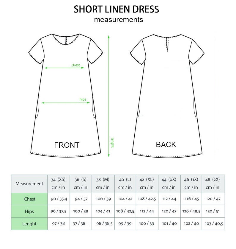 How to choose the right size of linen dress? It is important to choose the right size of linen clothes as this fabrics lacks elasticity. If you doubt about the right size or do not find the dress of appropriate size from offered standard sizes, you may contact us personally. We will be pleased to answer any questions