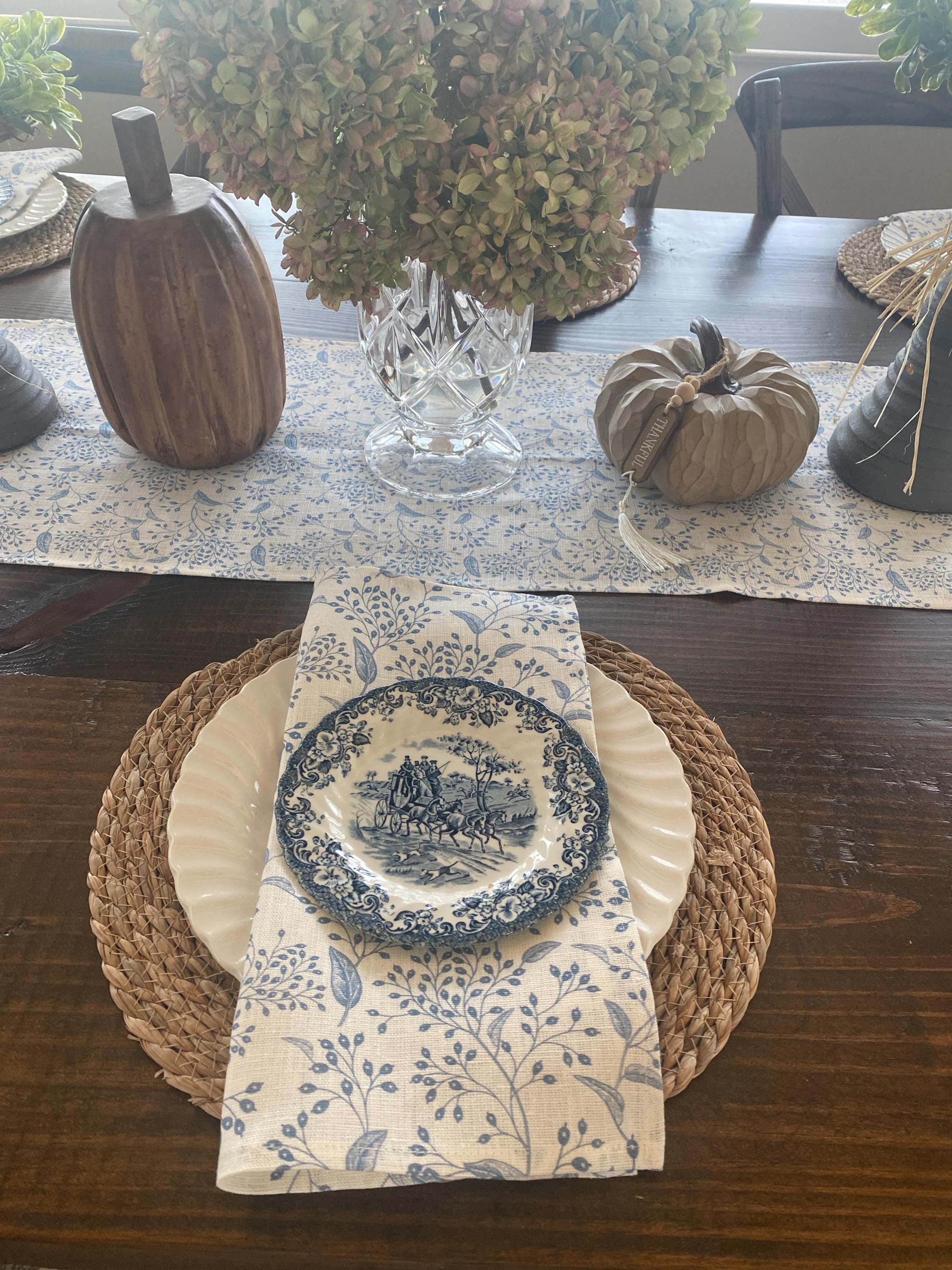 Napkins set "Toile Meadow". We have matching linen placemats, table runner and dish towel.
