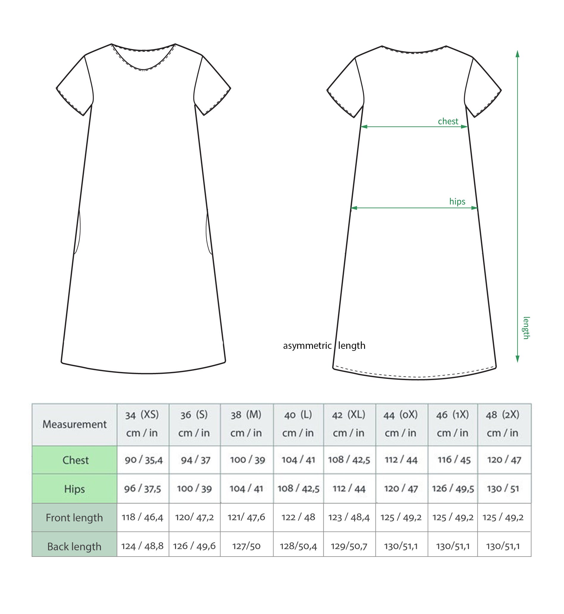 How to choose the right size of linen dress? It is important to choose the right size of linen clothes as this fabrics lacks elasticity. If you doubt about the right size or do not find the dress of appropriate size from offered standard sizes, you may contact us personally. We will be pleased to answer any questions