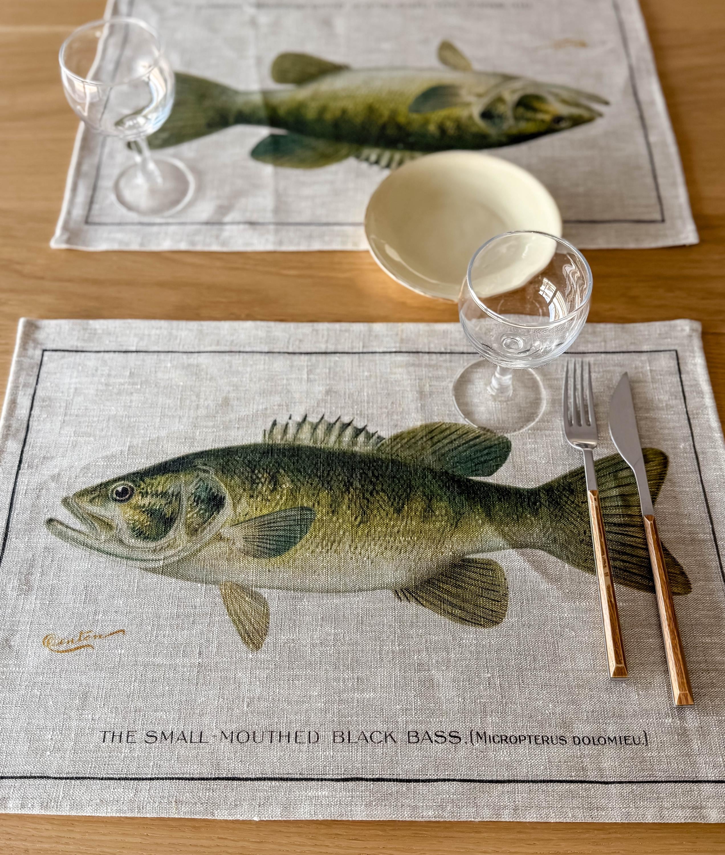 Placemats set Small-Mouthed Black Bass, linen placemats, 100% linen.