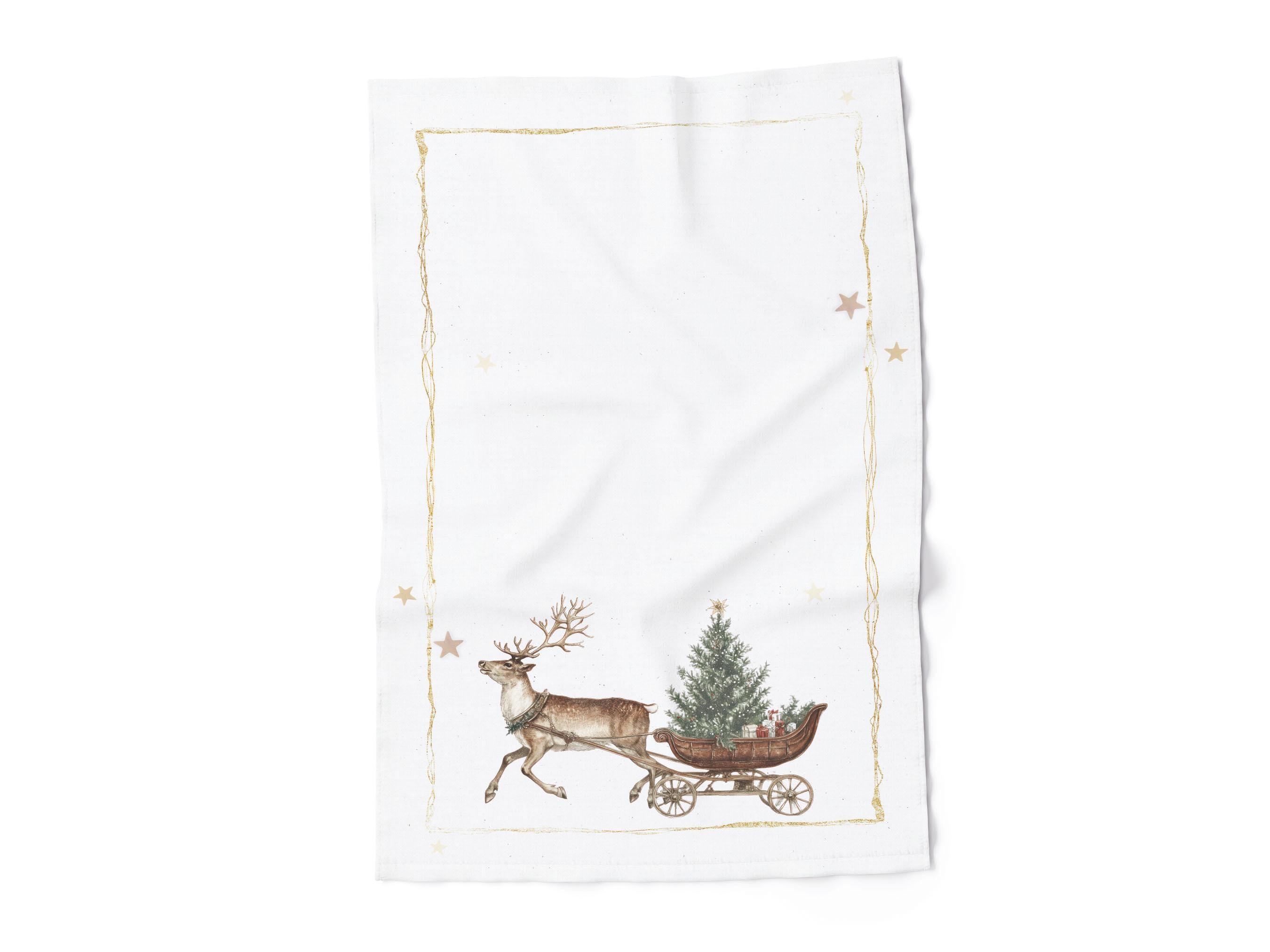 Kitchen towel "Winter Carriage". Linen kitchen towel with hook.