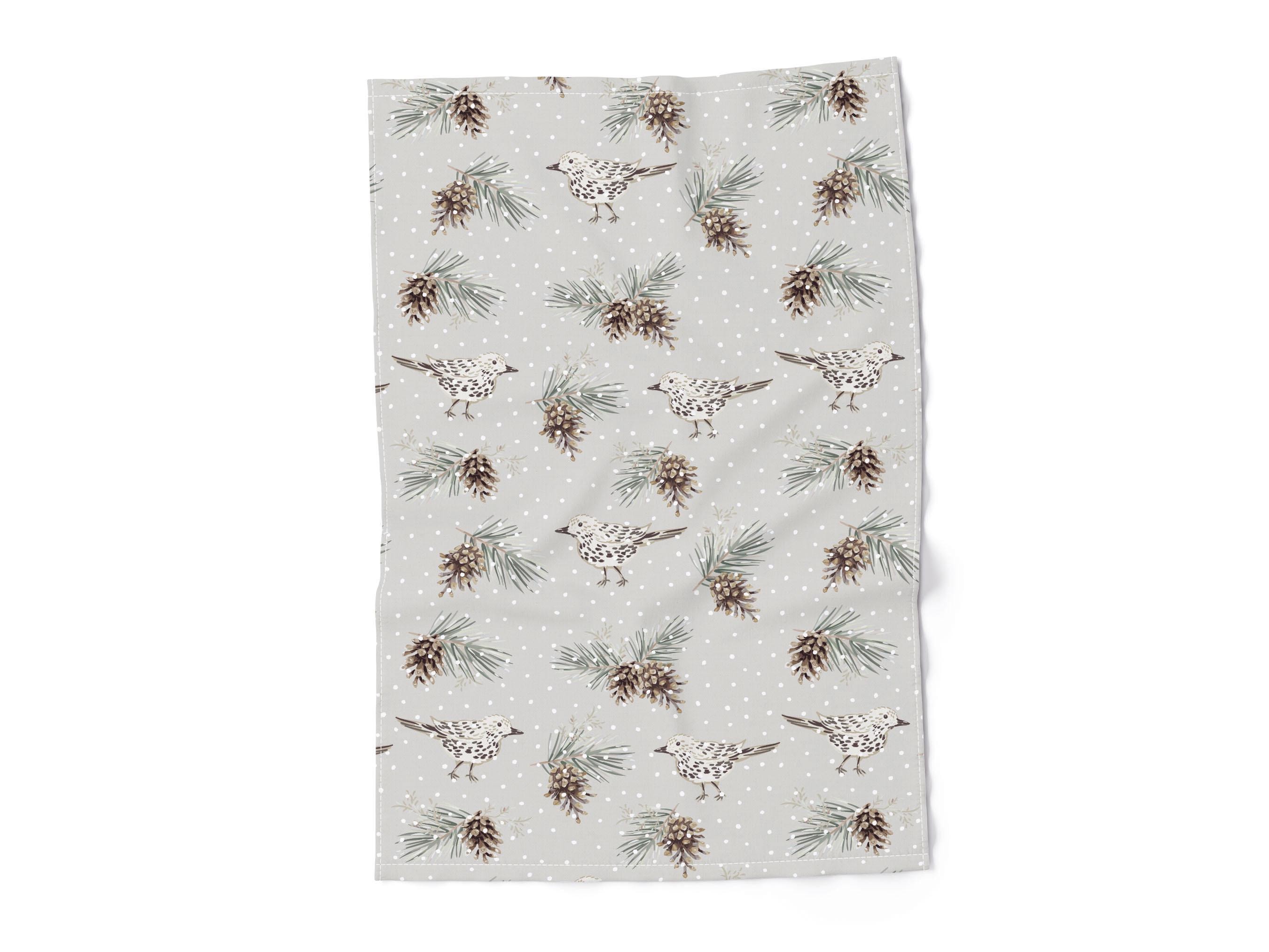 Kitchen towel "Soft Winter". Linen kitchen towel with hook.