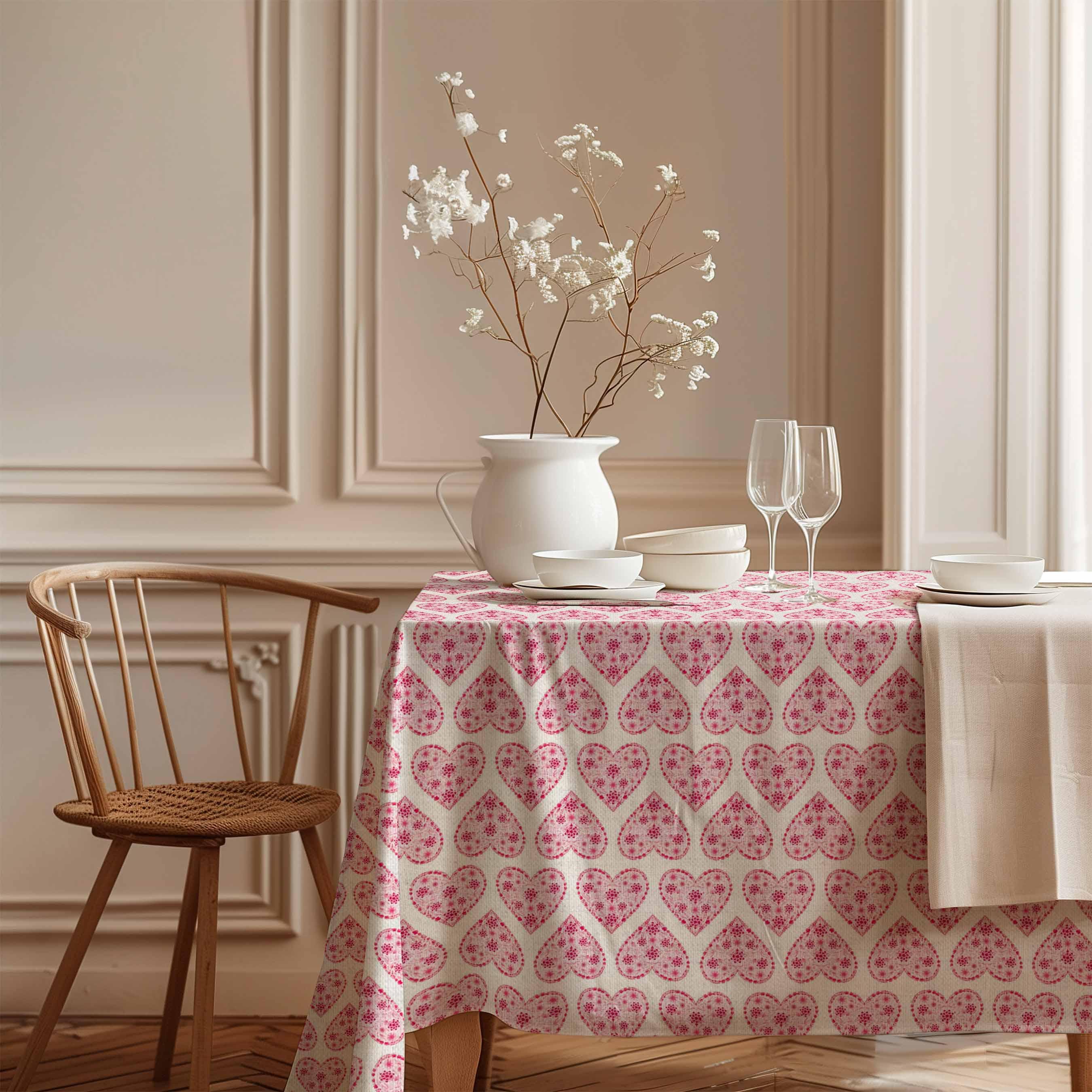 Tablecloth Valentine's Hearts, 100% linen.