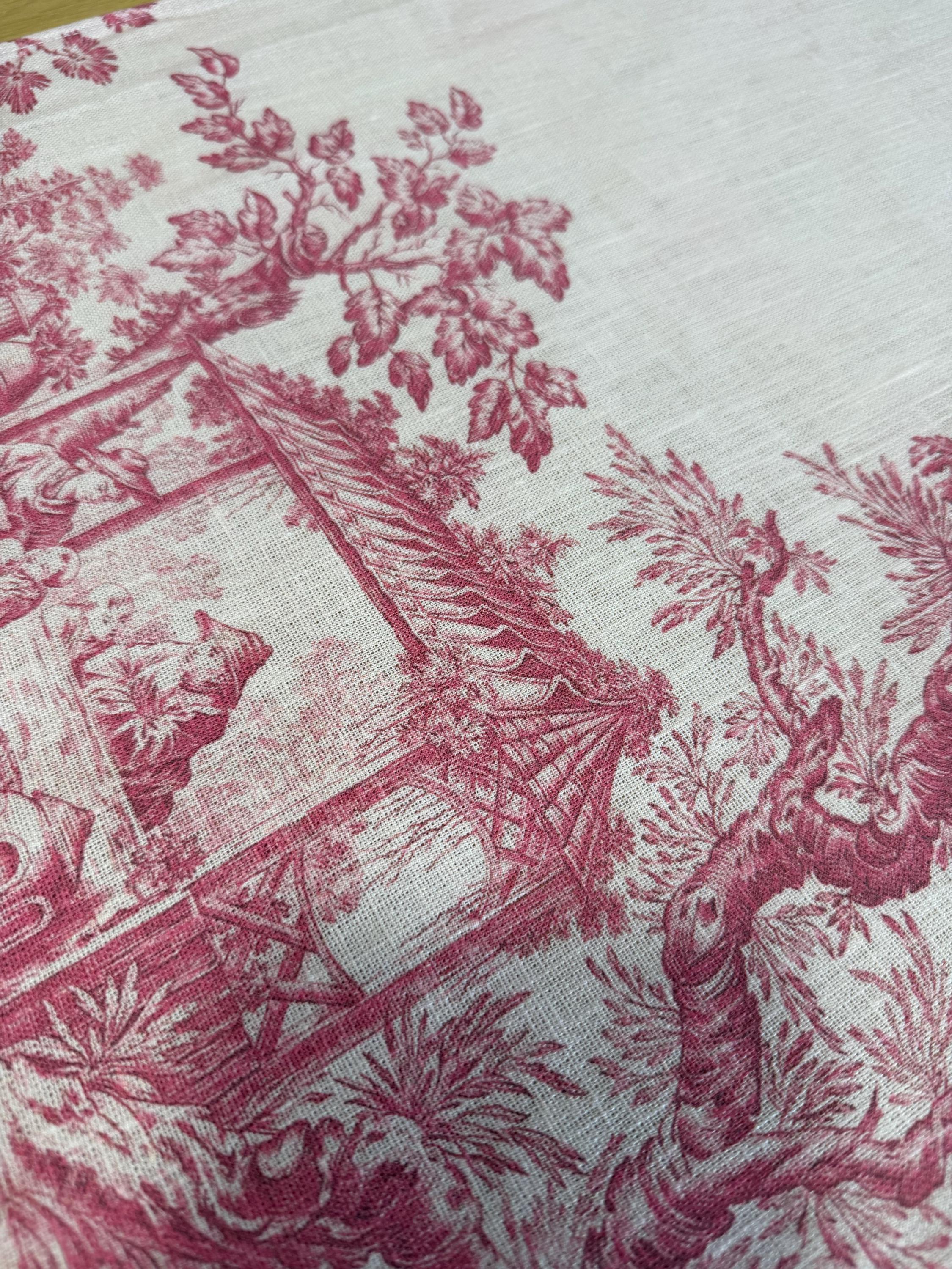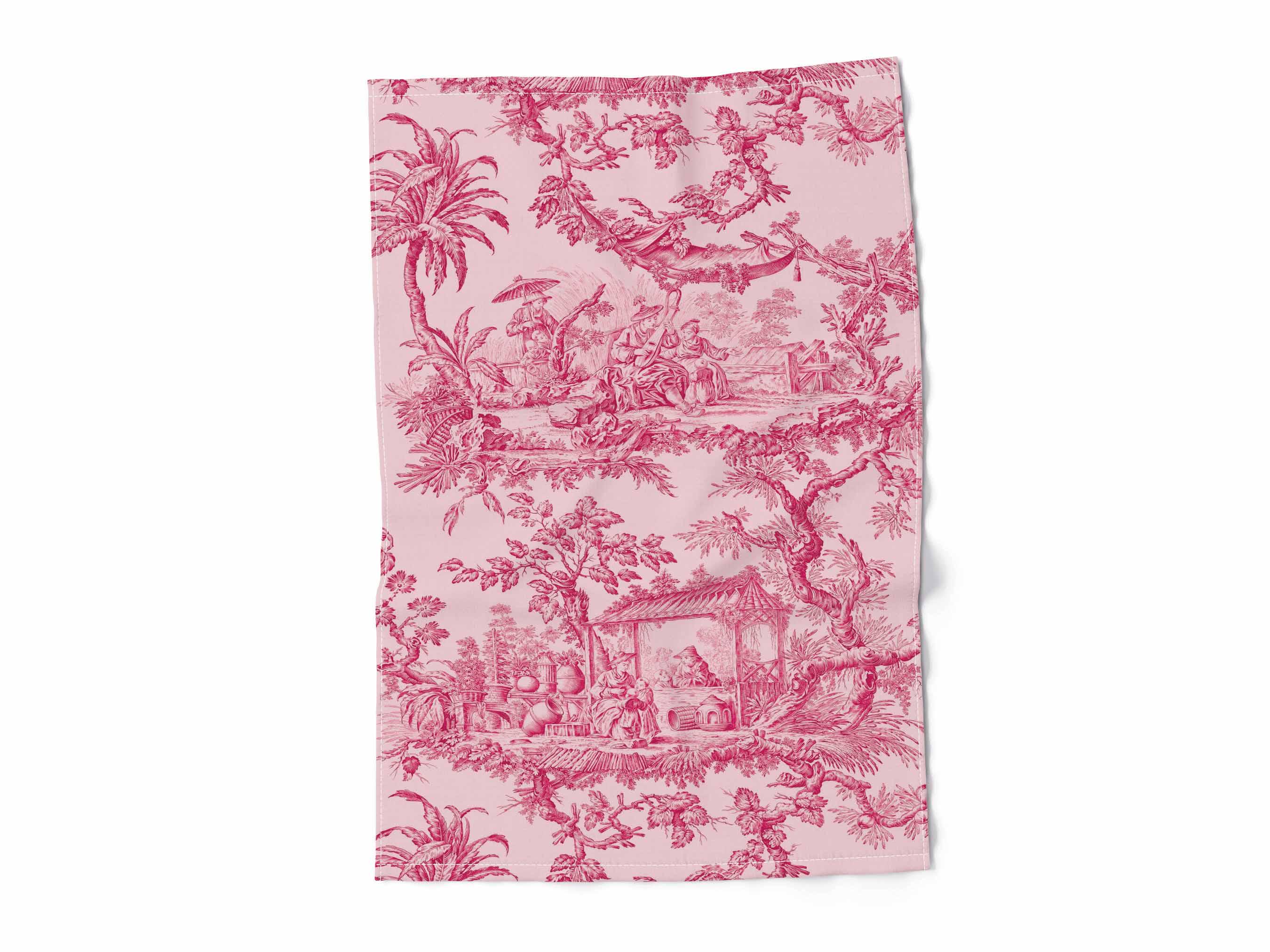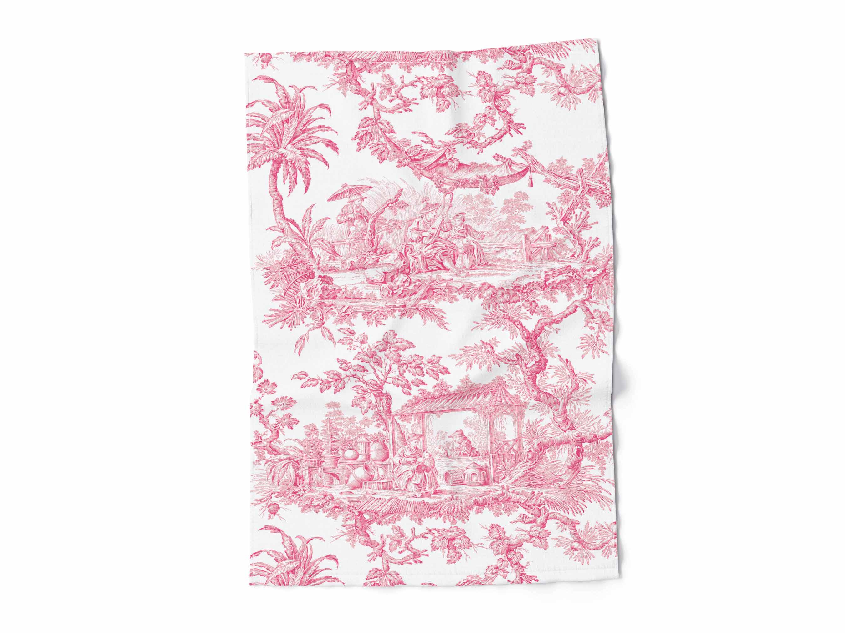 Linen Kitchen Towel - Pink Toile Toile de Jouy