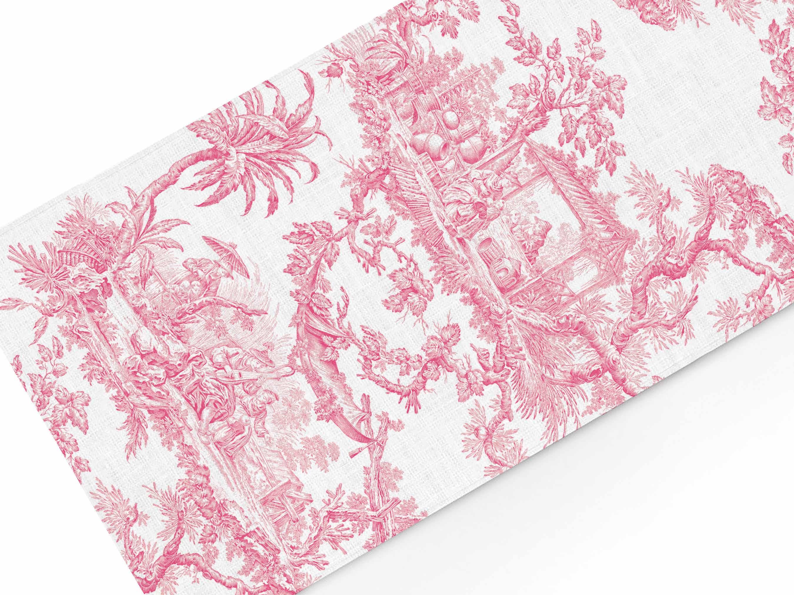 A Toile de Jouy table runner with a soft, romantic pink palette and an elegant vintage scene, bringing French charm to your table. Perfect for Valentine’s Day, it is also ideal for weddings, anniversaries, dinners, and special celebrations year-round. A truly classic, refined, and effortlessly sophisticated table essential.