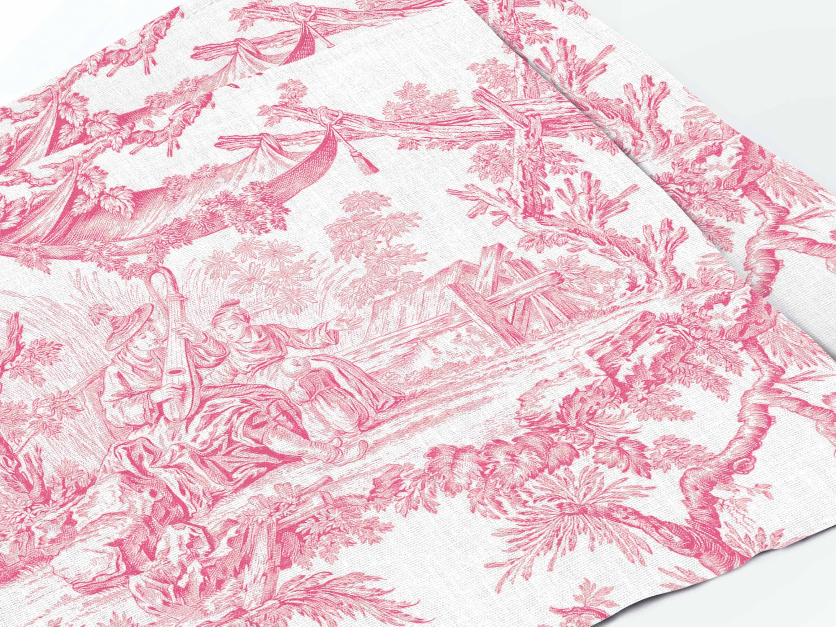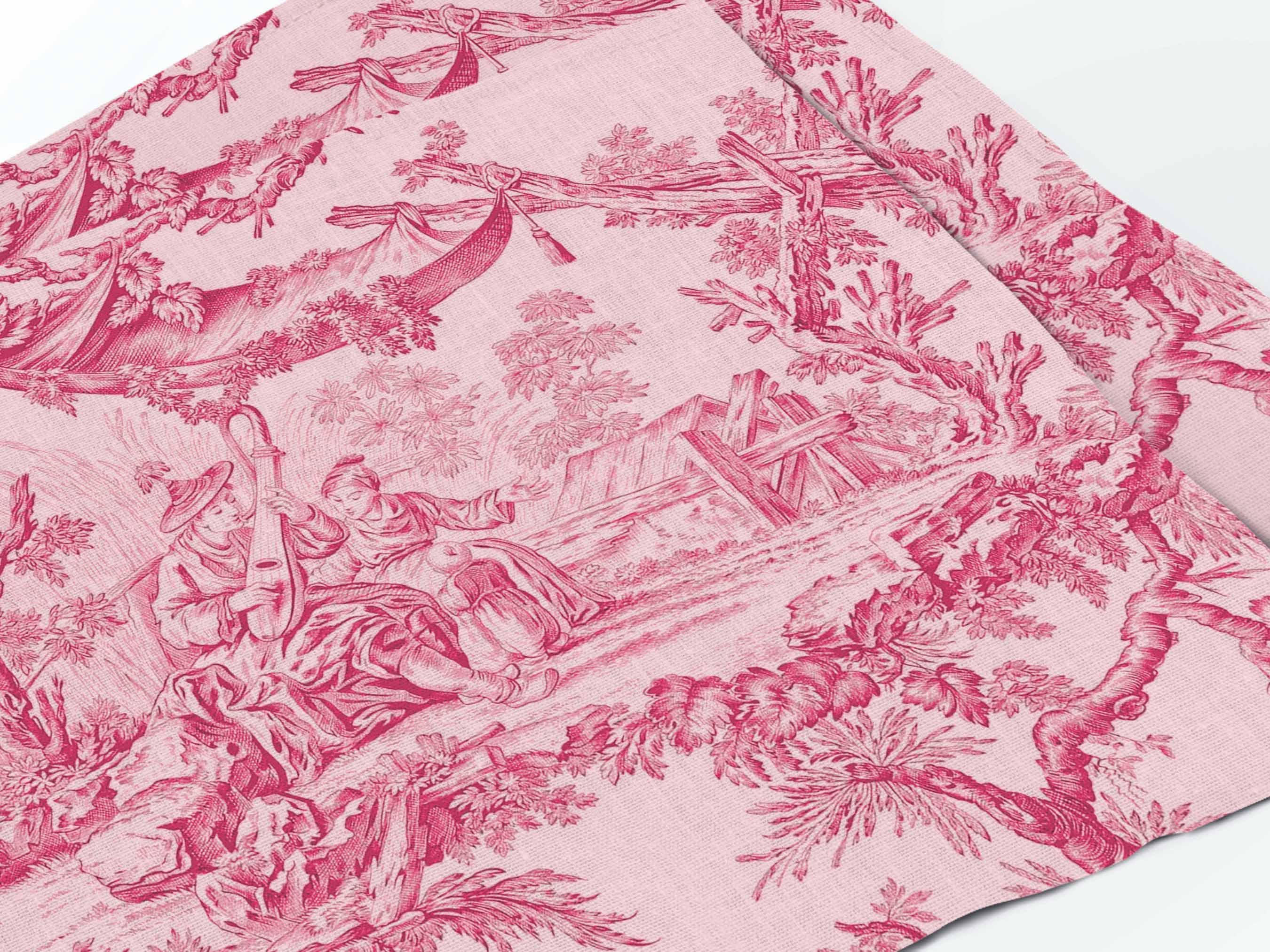 Linen Placemats Set - Pink Toile Toile de Jouy