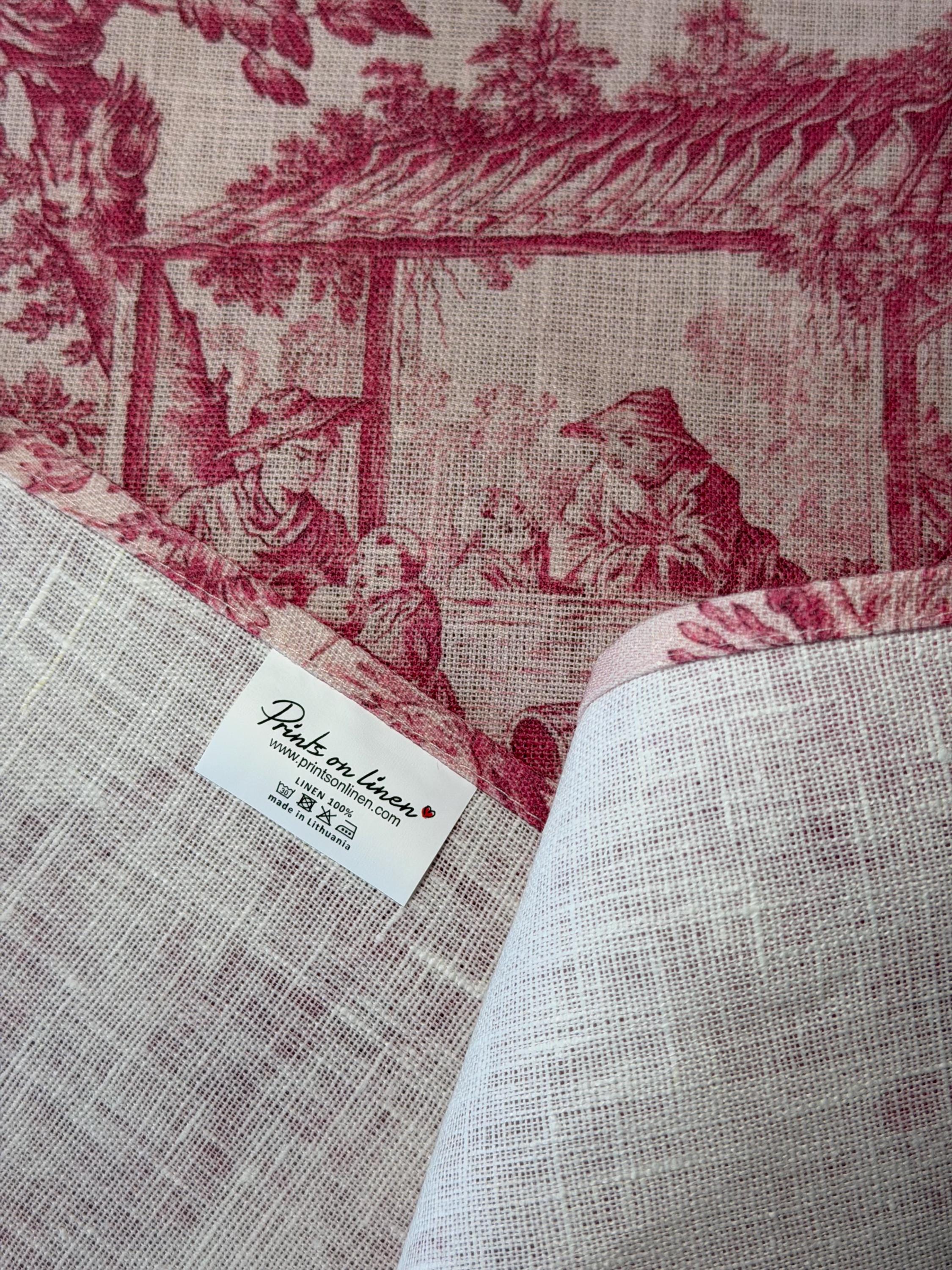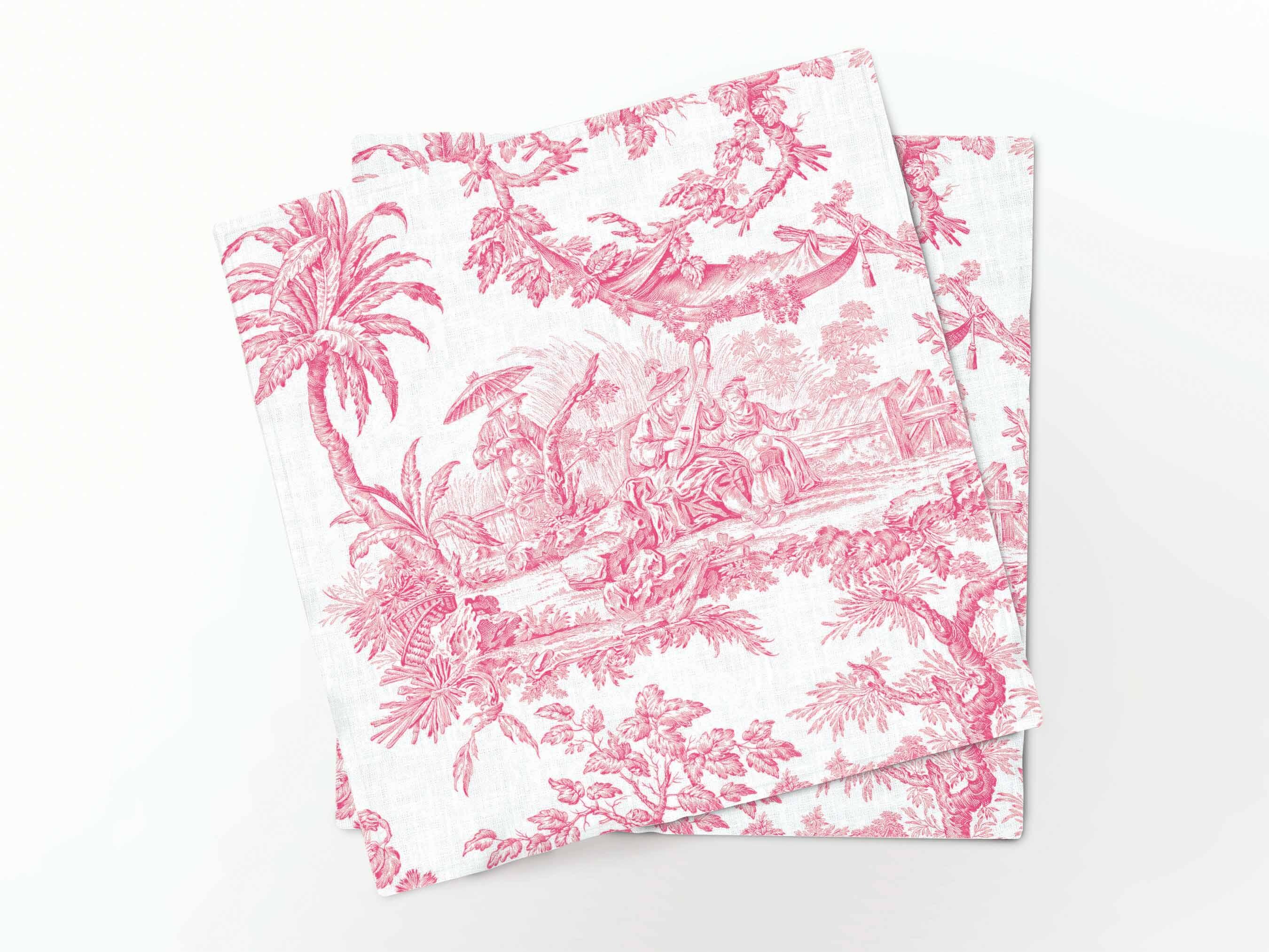 Linen Napkins Set - Pink Toile Toile de Jouy
