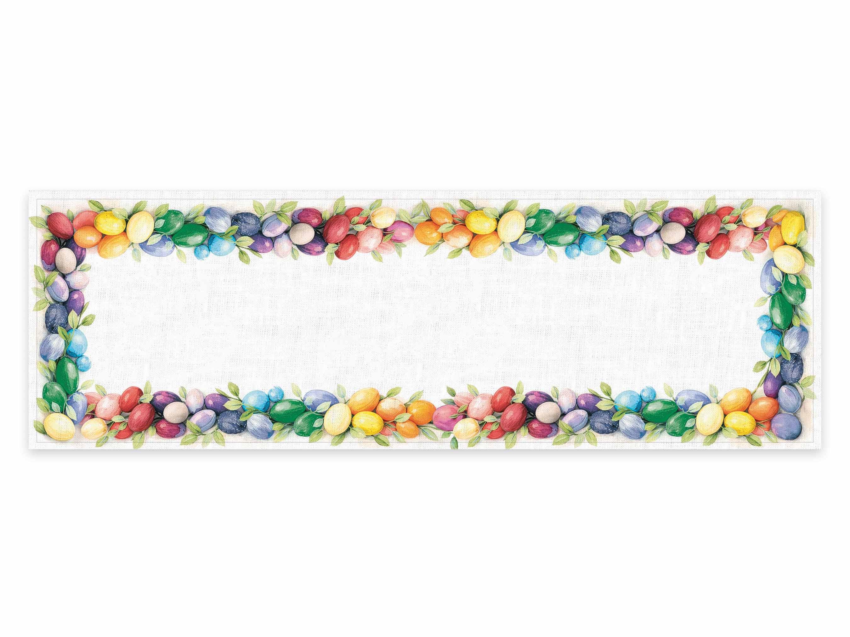 Colourful Easter table runner. We have matching linen placemats, napkins and dish towels.