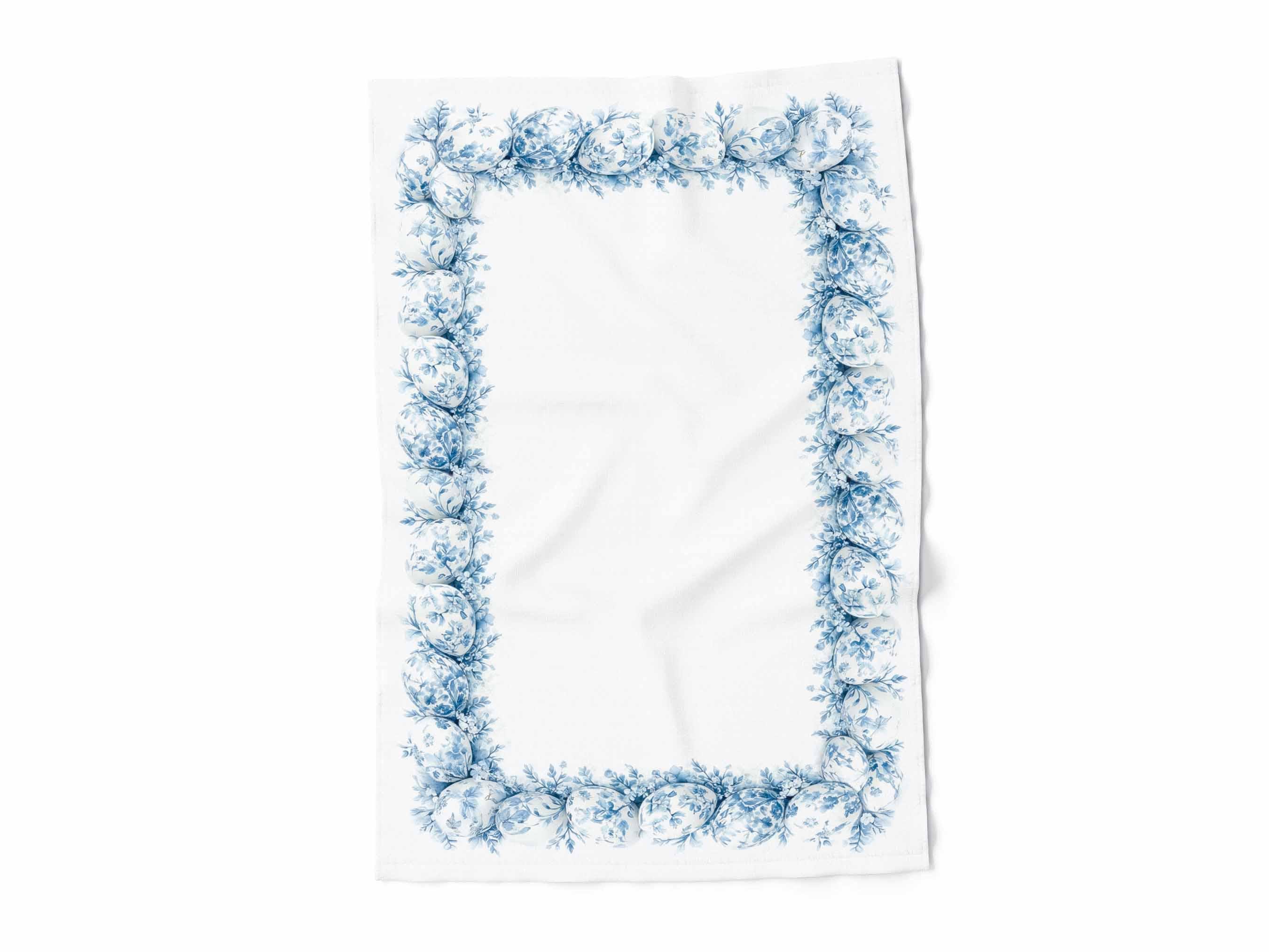 Linen towel "Toile de Jouy Eggs". Linen kitchen towel with hook. Hand made in Lithuania. Unique kitchen decor, housewarming gift, farmhouse decor.