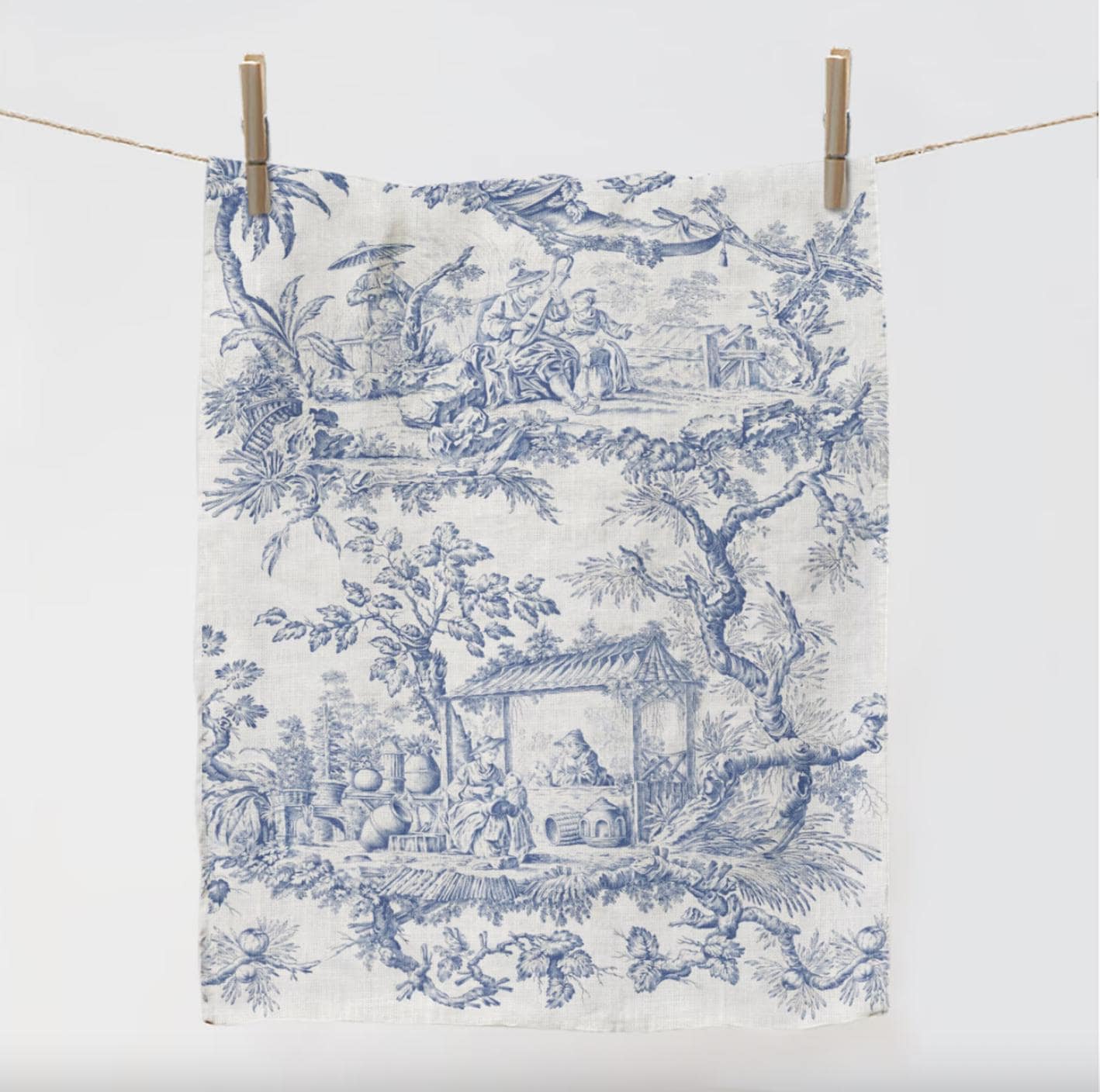 Linen Apron and Kitchen Towel Gift Set, Toile de Jouy, 100% linen.
