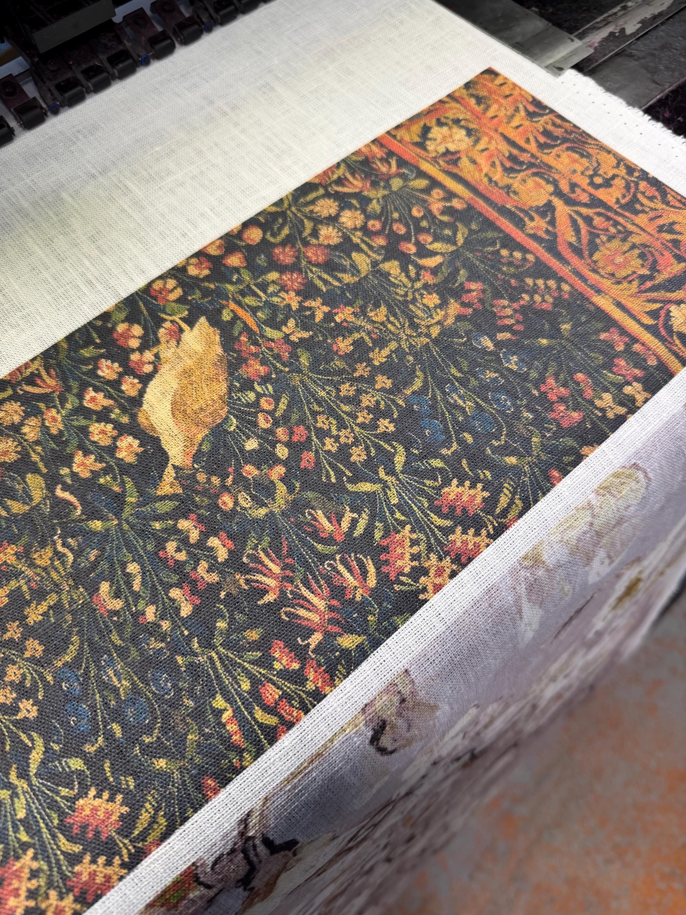 If you would like to order same linen fabric with different picture, please send us your file and we print it on the linen.