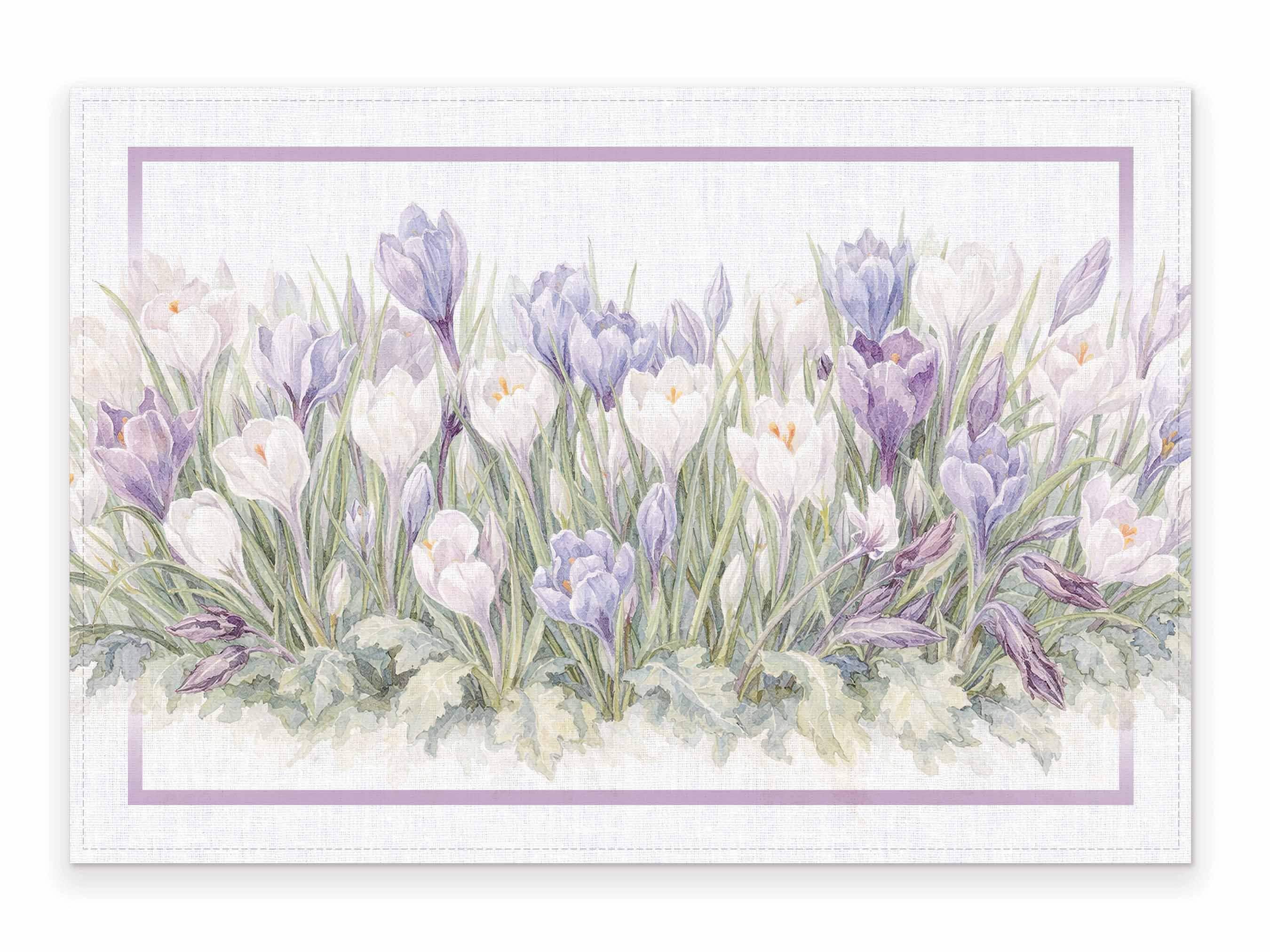 This 100% linen placemats with blooming purple crocuses bring fresh spring colors to your dining room. The soft floral design adds a light, effortless touch, perfect for everyday meals, spring gatherings, or Easter celebrations. One of our best-selling designs, loved for its natural look and spring feel. We have matching linen napkins, towels, tablecloth, and table runners.