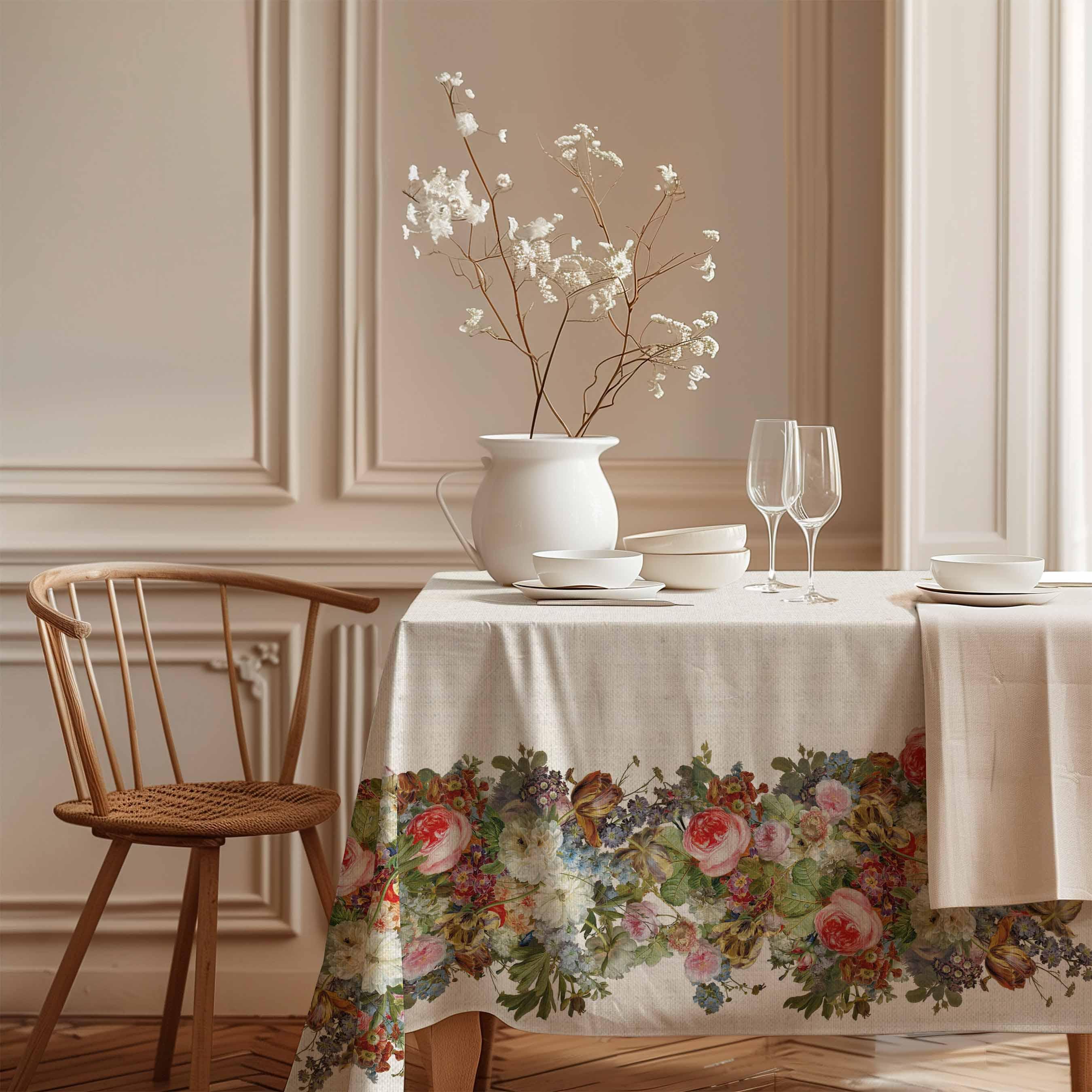 Tablecloth Gerard van Spaendonck, Still Life, White Edition. We have matching linen placemats, napkins or table runners.