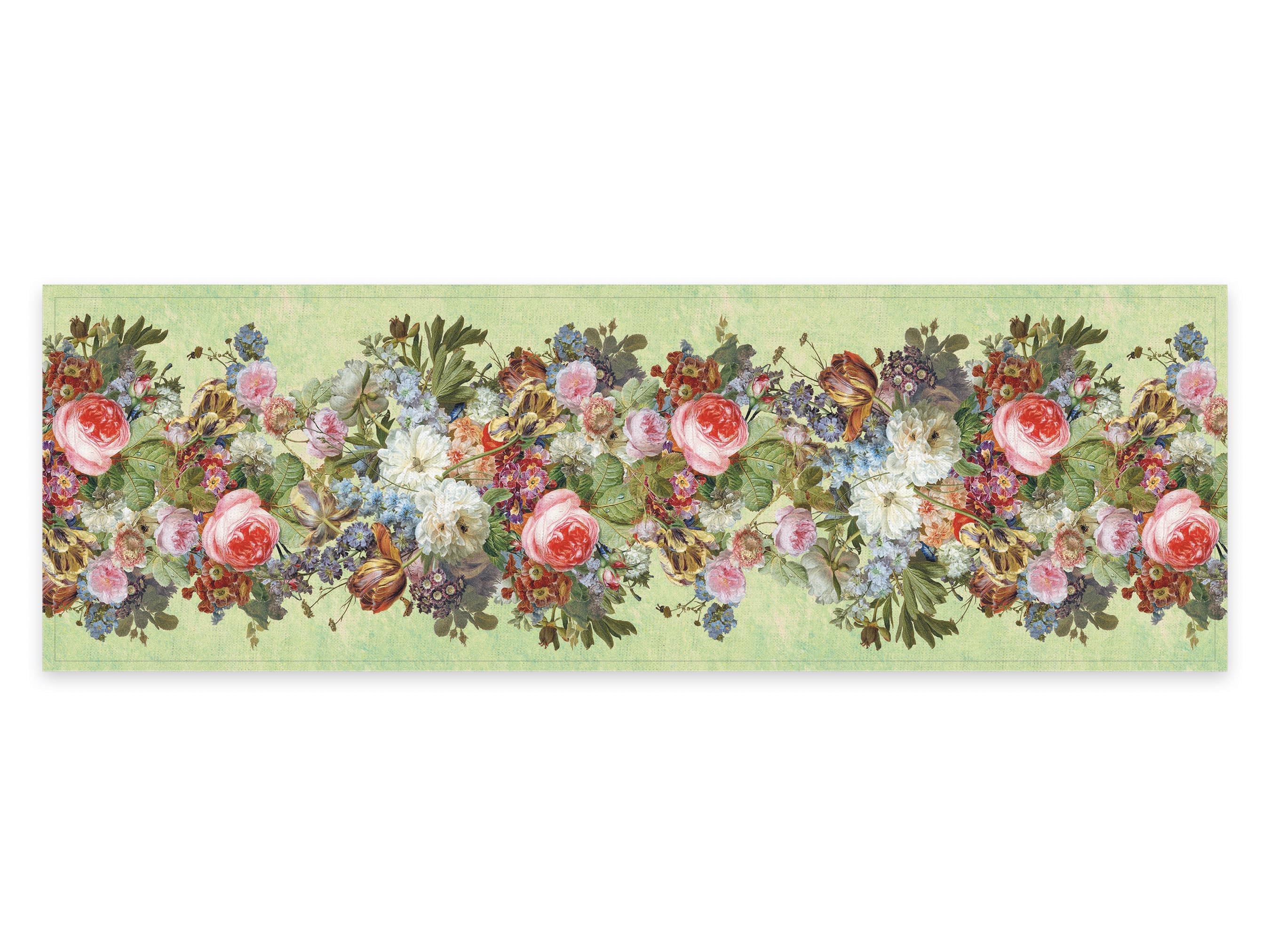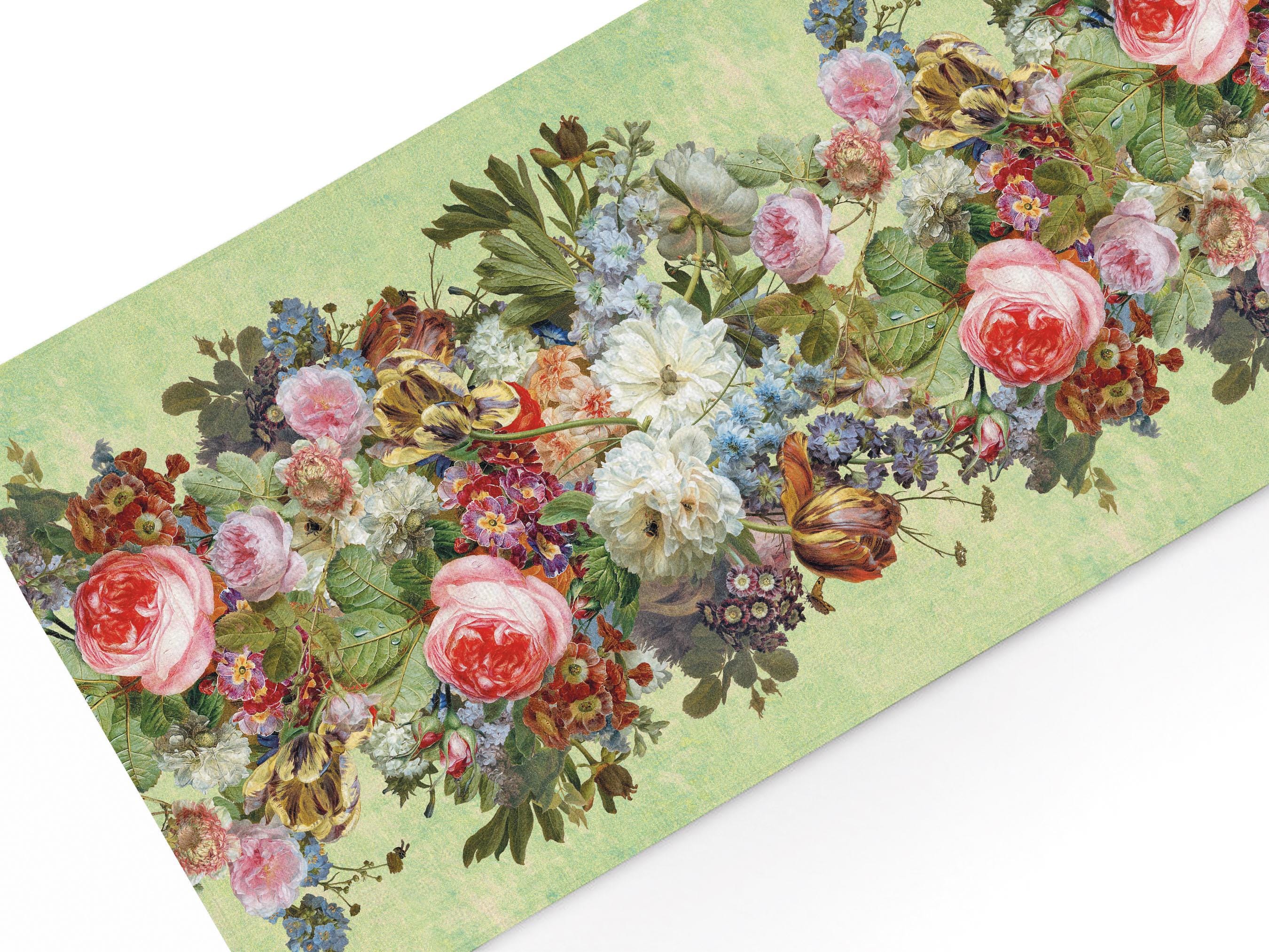 Linen table runner Gerard van Spaendonck, Still Life. Green background. We have matching linen placemats, napkins and dish towel.