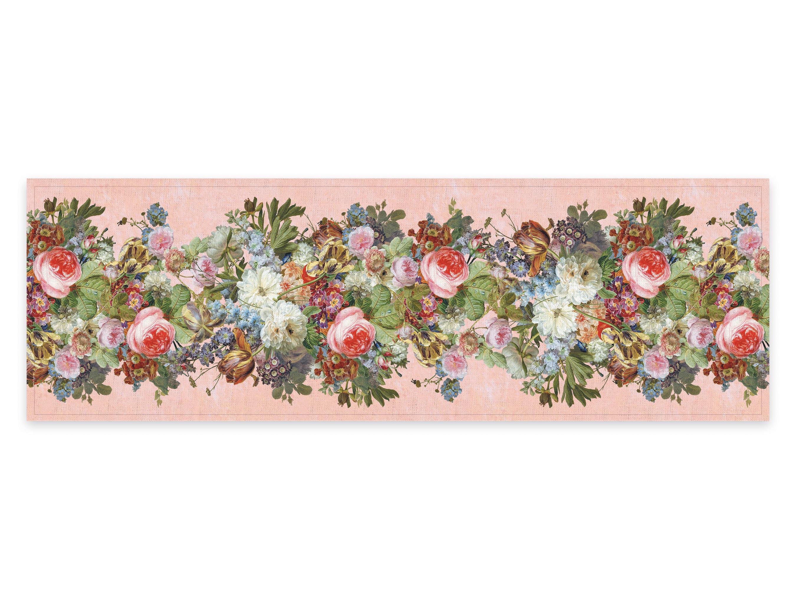 Linen table runner Gerard van Spaendonck, Still Life. Pink background. We have matching linen placemats, napkins and dish towel.