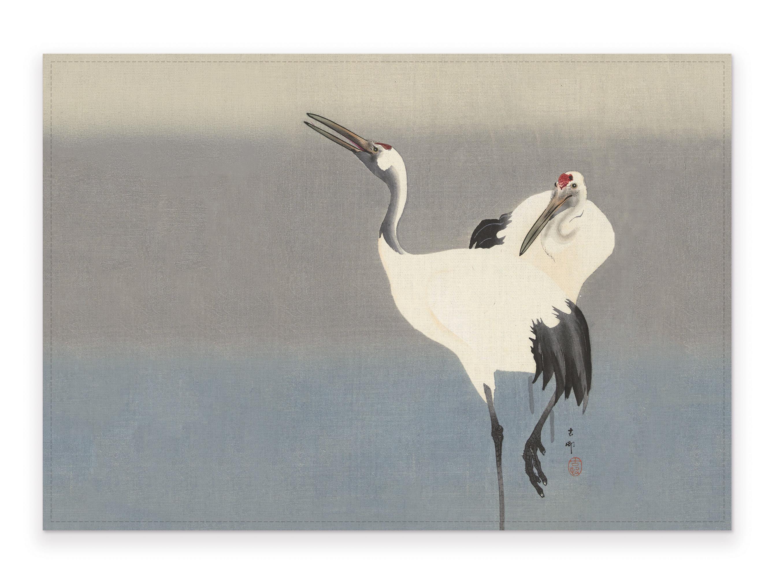 Placemats set, Ohara Koson Cranes, Wabi Sabi Home, 100% linen