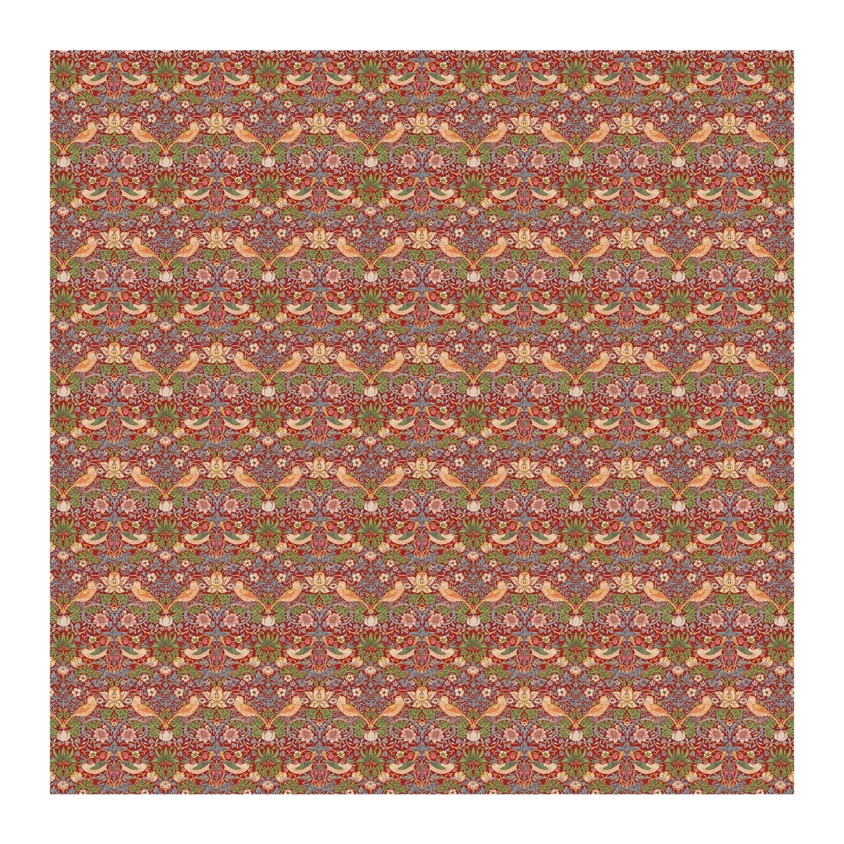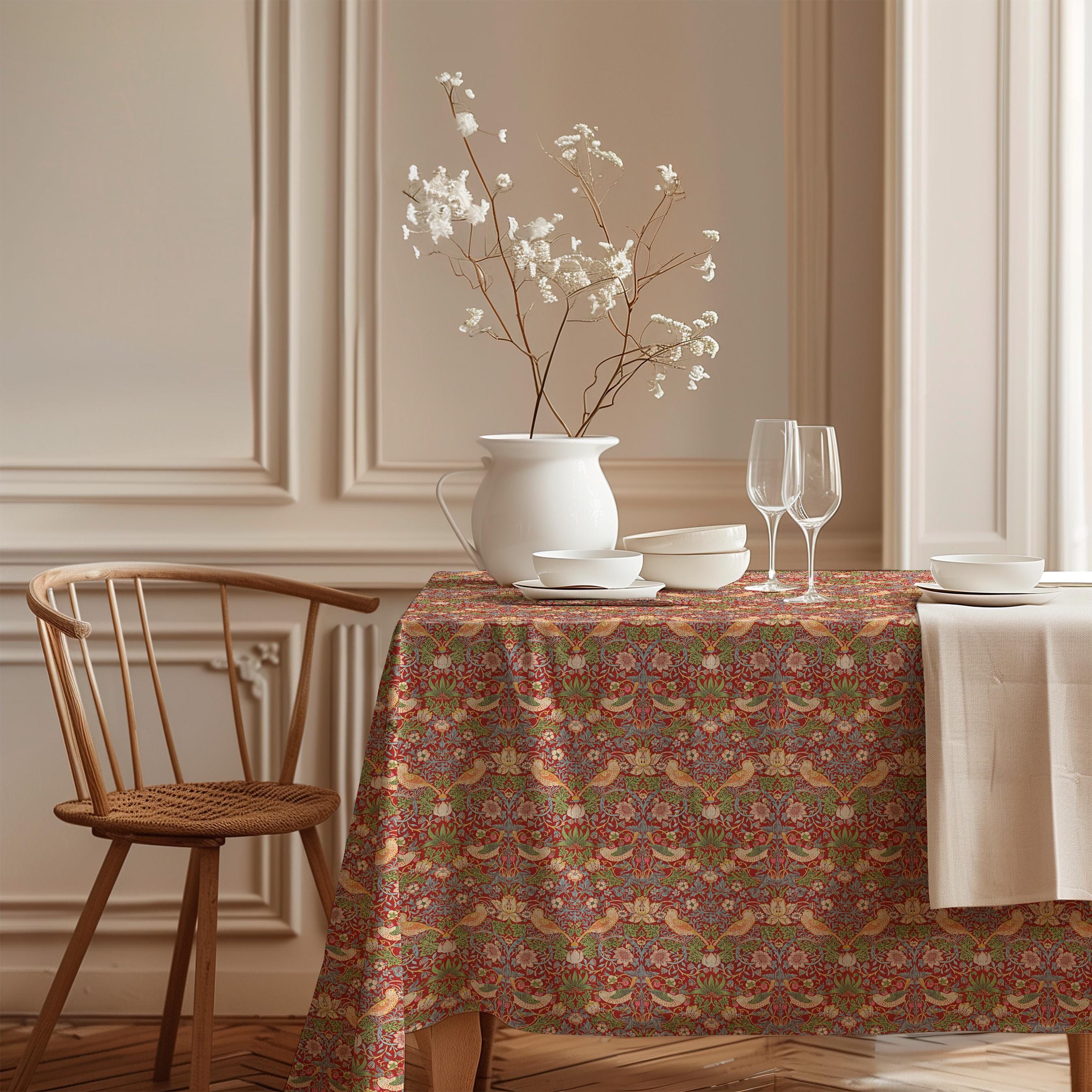 Tablecloth William Morris "Strawberry Thief", Victorian Red, 100% natural linen fabric.