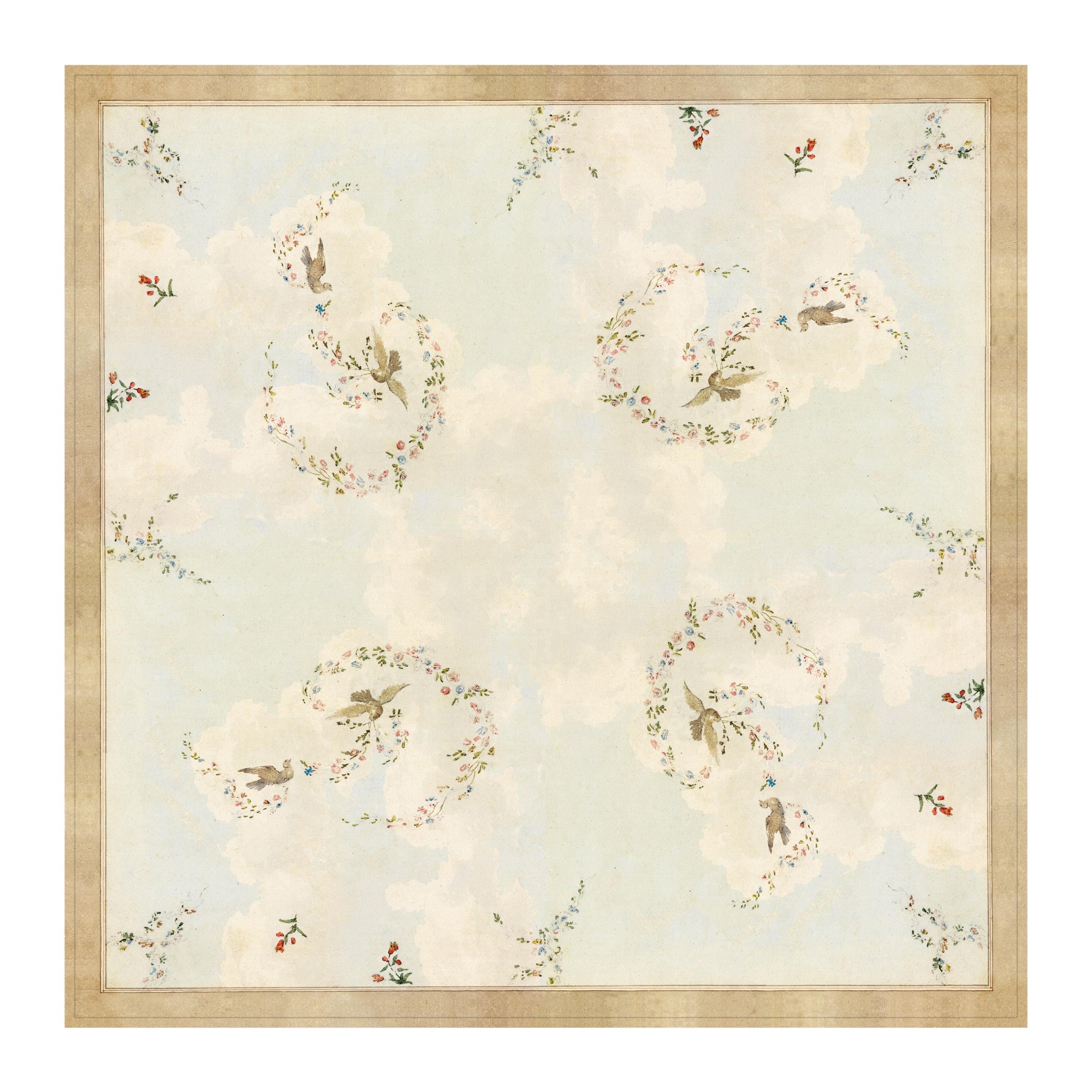 Linen Tablecloth "Doves and Flower Garlands" , Vintage pattern, 100% linen. We have matching linen placemats, napkins, or table runners.