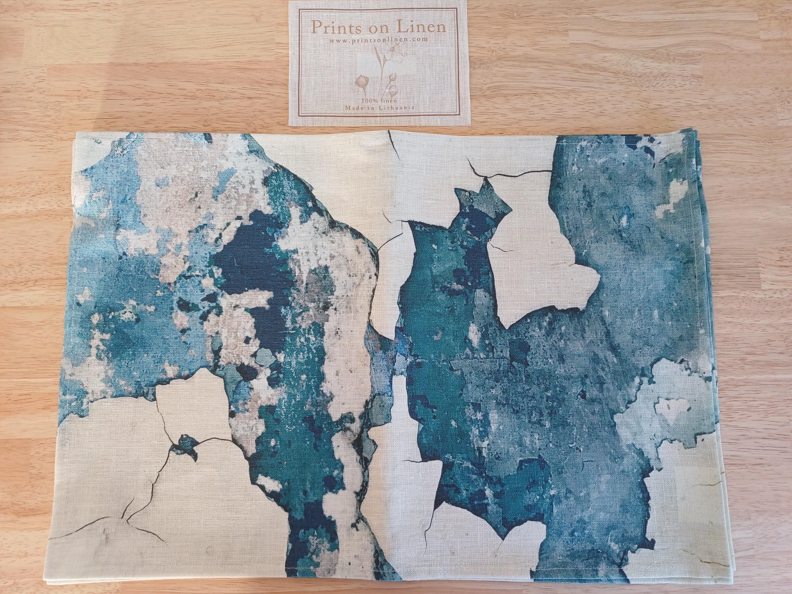 Hand made linen placemats set, WABI SABI pattern, printed on natural white linen fabric.