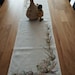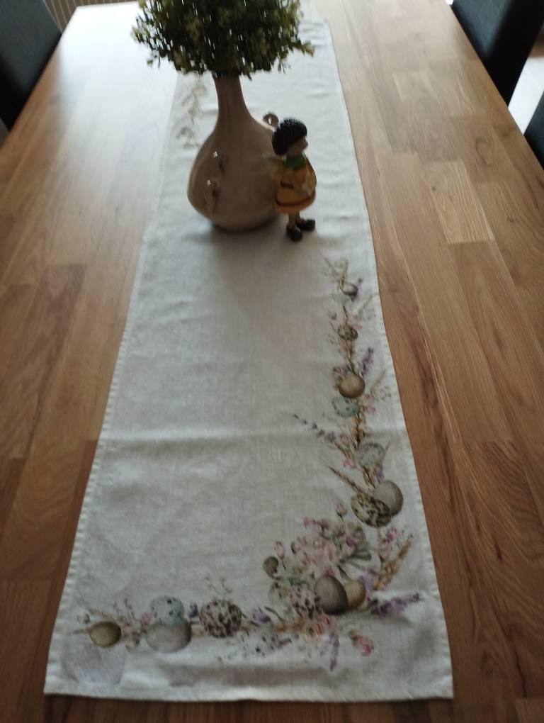 Easter table runner made of 100% linen fabric. Two designs : classic table runner and with pink border. We have matching linen placemats, napkins and dish towel.