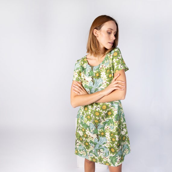 Linen Sleeveless Dress, William Morris Willow Print, Summer Tunic with Pockets
